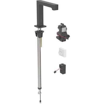 Grifo electrónico para lavabo Geberit Brenta, montaje de encimera, servicio de red, para caja funcional empotrada: Negro mate / Con revestimiento de limpieza fácil, Mezclador=Con mezclador