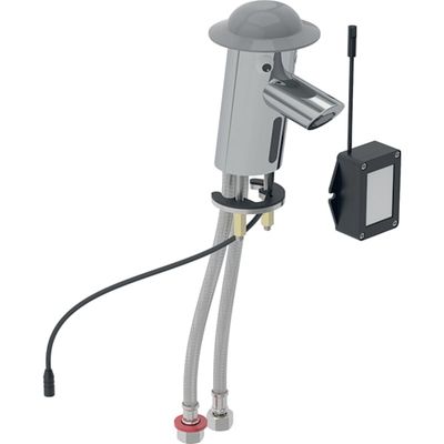 Grifo electrónico para lavabos Geberit Bambini, servicio a pilas: Mezclador=Con mezclador, Protector: gris polvo, Cuerpo: cromado brillante