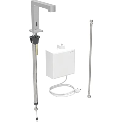 Grifo electrónico para lavabos Geberit Brenta, montaje de encimera, servicio de red, con caja funcional vista: Acabado de acero inoxidable / Cepillado, con revestimiento fácil de limpiar, Mezclador=Sin mezclador