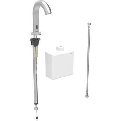 Grifo electrónico para lavabos Geberit Piave, montaje de encimera, servicio a batería, con caja funcional vista: Negro mate / Con revestimiento de limpieza fácil, Mezclador=Con mezclador