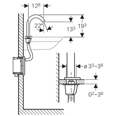 • Para instalación en bastidores para lavabo Geberit, grifo de encimera electrónico con caja funcional empotrada