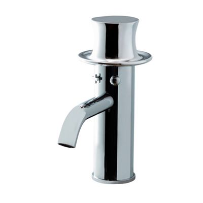 Grifo monomando lavabo para instalación en repisa, serie Chap de Griferías Galindo. Con desagüe semiautomático. Cromo