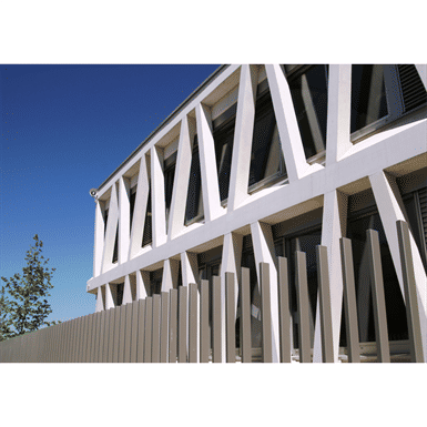 Hormigón autocompactante para elementos vistos realizado con HA-25/AC/12/XC2 Agilia Arquitectónico de Holcim, elaborado en central con 2 horas de mantenimiento de propiedades reológicas con una resistencia a compresión de 25 N/mm2, un tamaño máximo del árido de 12 mm para una clase de exposición XC2, fluidez de 700 a 750 mm, según normas NTE-CSZ, EHE-08 y CTE DB-SE-C. Componentes del hormigón con marcado CE y DdP (Declaración de prestaciones) según Reglamento (UE) 305/2011. Declaración ambiental de producto propia (DAP) y reducción de entre un 30% y un 50% de emisiones de CO2