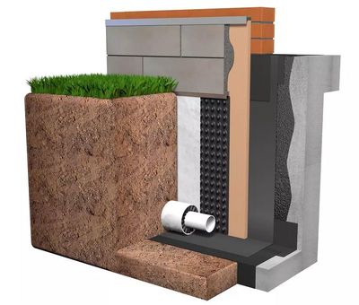 Protección de muro por su cara externa, constituida por: imprimación mediante emulsión bituminosa base acrílica con una dotación mínima de 250 gr/m2 tipo EMUFAL PRIMER; Impermeabilización ADHERIDA de lámina de betún modificado con elastómeros SBS con armadura de fieltro de fibra de poliéster (FP) con una flexibilidad a bajas temperaturas ≤ -15ºC tipo MORTERPLAS SBS FM 3 kg (LBM-30-FP según UNE 104410:2013); aislamiento térmico formado por planchas de poliestireno extruido con cantos machihembrados, resistencia a la compresión de 250 KPa, conductividad térmica Lambda 0,033 W/mºK y espesor 50 mm tipo SOPRA XPS PM 50; capa drenante de polietileno de alta densidad (HDPE) y geotextil de polipropileno incorporado , espesor de 7,5 mm y resistencia a la compresión >250 kN/m2 tipo DRENTEX PROTECT ECO GARDEN PLUS fijado mecánicamente al soporte mediante FIJACIONES DRENTEX y perfil de arranque tipo DRENTEX PERFIL para evitar el deslizamiento del sistema durante el compactado de tierras, listo para el vertido de tierras. Incluye parte proporcional de entregas con paramento vertical con lámina de refuerzo de ancho 33 cm tipo MORTERPLAS SBS FP 3 KG BAND 33 previa imprimación del soporte con EMUFAL PRIMER (300 g/m2). Productos con marcado CE europeo y sistema de impermeabilización certificado mediante Documento de Idoneidad Técnica (DIT) MORTERPLAS ESTRUCTURAS ENTERRADAS nº 580/11. Puesta en obra conforme al DIT nº 580/11