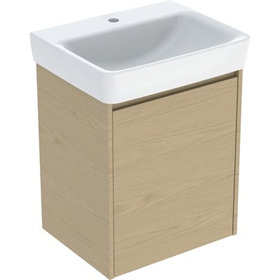 Juego de lavabo compatible con mueble bajo Geberit Selnova Square, una puerta: 55x69.7x44cm, Ancho de lavabo=55cm, Lavabo: blanco, Cuerpo, Frontal: encina natural / Melamina con textura de madera