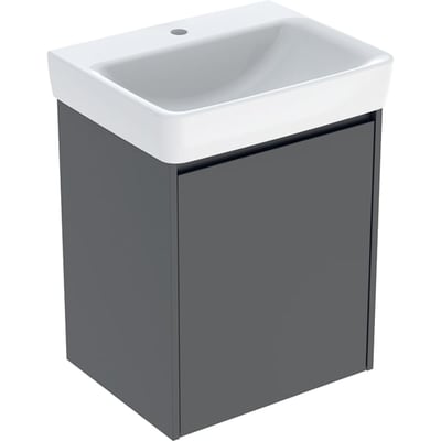 Juego de lavabo compatible con mueble bajo Geberit Selnova Square, una puerta: 55x69.7x44cm, Ancho de lavabo=55cm, Lavabo: blanco, Cuerpo, Frontal: lava / cubierto con brillo satinado