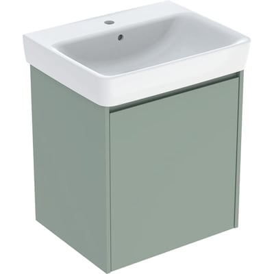 Juego de lavabo compatible con mueble bajo Geberit Selnova Square, una puerta: 60x69.7x48cm, Ancho de lavabo=60cm, Lavabo: blanco, Cuerpo, Frontal: Verde salvia / cubierto con brillo satinado