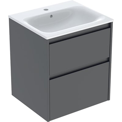 Juego de lavabo para mueble Geberit Selnova Square, borde fino, dos cajones, mueble bajo para lavabo: 55x62.1x48cm, Ancho de lavabo=55cm, Lavabo: blanco, Cuerpo, Frontal: lava / cubierto con brillo satinado