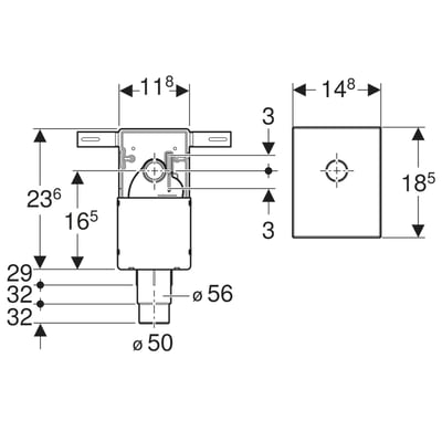 Juego de sifón empotrado Geberit para lavabos, desagüe horizontal: d=50–56mm, G=1 1/4″, d1=32mm, Cromado brillante