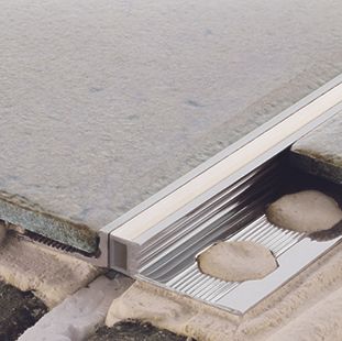 Junta de dilatación prefabricada para absorber los movimientos de las superficies revestidas Novojunta® SliMM de Emac®. Diseñada para cerámica microespesorada, gresites y mosaicos finos. Formada por dos perfiles de aluminio unidos lateralmente a un cuerpo central de PVC flexible color beige nº03. Perfil de 2,50 m. de longitud, protegido con film protector, con alas de fijación troqueladas mediante perforaciones en forma de octógono y destinado a complementar baldosas u otro tipo de revestimientos con un espesor total de 4,5 mm, colocado según se indica en la ficha técnica del fabricante.