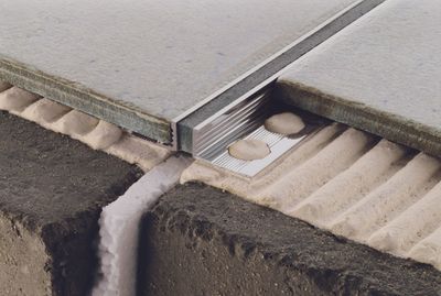 Junta de dilatación prefabricada para absorber los movimientos de las superficies revestidas Novojunta® Metallic Latón de Emac®. Formada por dos perfiles de latón unidos lateralmente a un cuerpo central flexible de EPDM microcelular color gris nº02 . Perfil de 2,50 m. de longitud, protegido por un film protector, con alas de fijación troqueladas mediante perforaciones en forma de octógono y destinado a complementar baldosas u otro tipo de revestimientos con un espesor total de 15 mm, colocado según se indica en la ficha técnica del fabricante.