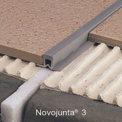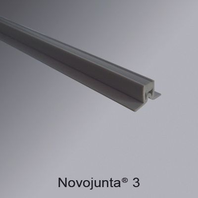 Junta de dilatación prefabricada para absorber los movimientos de las superficies revestidas Novojunta® 3 de Emac®. Fabricada mediante co-extrusión de PVC color negro Nº 10. Perfil de 2,50 m. de longitud, con doble ala de fijación y destinado a complementar baldosas u otro tipo de revestimientos con un espesor total de 6 mm, colocado según se indica en la ficha técnica del fabricante.
