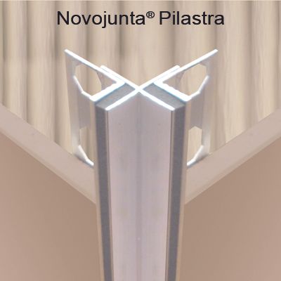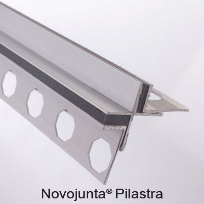 Junta de dilatación prefabricada para aristas destinadas a absorber los movimientos de las superficies revestidas Novojunta® Pilastra de Emac®. Formada por una estructura de aluminio anodizado color plata mate Nº 13 unida a dos cuerpos flexibles de EPDM microcelular. Perfil de 2,50 m. de longitud, protegido por un film protector, con alas de fijación troqueladas mediante perforaciones en forma de octógono y destinado a complementar baldosas u otro tipo de revestimientos con un espesor total de 15 mm, colocado según se indica en la ficha técnica del fabricante.