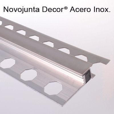 Perfil preformado para junta de dilatación Novofachada acero Inoxidable de Emac®. Apta para exteriores. Formada por dos perfiles de acero inoxidable AISI304 unidos lateralmente a un cuerpo central flexible de EPDM microcelular oculto bajo una pletina embellecedora, acabado alto brillo nº16. Perfil de 2,50 m. de longitud, protegido por un film protector, con alas de fijación troqueladas mediante perforaciones en forma de octógono, destinado a complementar baldosas u otro tipo de revestimientos con un espesor total de 15 mm, y con una capacidad de movimiento de +/- 1,2 mm, colocado según se indica en la ficha técnica del fabricante.