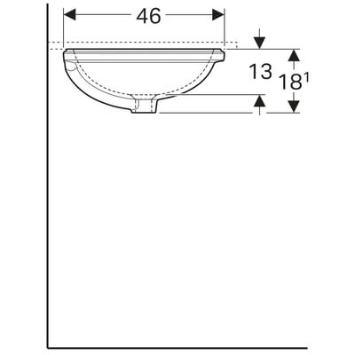 Lavabo bajo encimera Geberit serie VariForm ovalado: B1=42cm, Toma de grifo=Sin, Rebosadero=Visible, Blanco/parte inferior: esmaltado