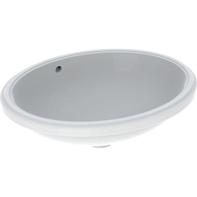 Lavabo bajo encimera Geberit serie VariForm ovalado: B1=50cm, Toma de grifo=Sin, Rebosadero=Visible, Blanco