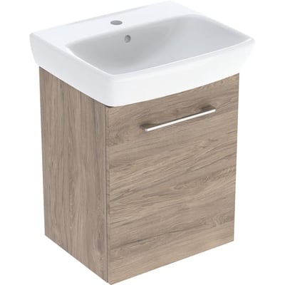 Lavabo con armario, una puerta, serie Selnova Square de Geberit. 50x64.9x42cm, Nogal hickory