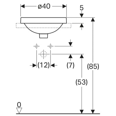 Lavabo empotrado serie Geberit VariForm redondo: Toma de grifo=Sin, Rebosadero=Sin, Blanco