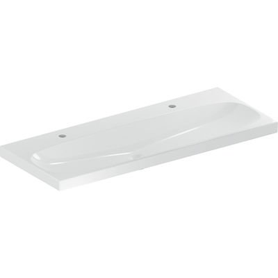 Lavabo serie Geberit Acanto: 120x48cm, Toma de grifo=Izquierda y derecha, Rebosadero=Sin, Blanco