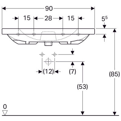 Lavabo serie Geberit Acanto, con superficie de apoyo: 90x48cm, Toma de grifo=Sin, Rebosadero=Visible, Blanco