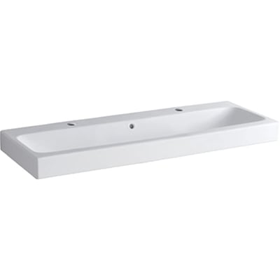 Lavabo serie Geberit iCon: 120x48.5cm, Toma de grifo=Izquierda y derecha, Rebosadero=Visible, Blanco