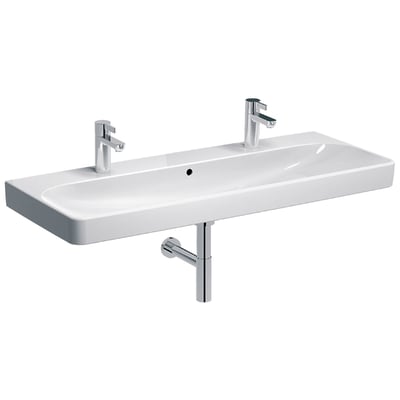 Lavabo serie Geberit Smyle Square: 120x48cm, Toma de grifo=Izquierda y derecha, Rebosadero=Visible, Blanco