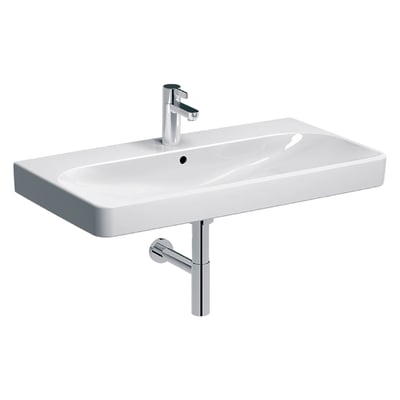 Lavabo serie Geberit Smyle Square: 90x48cm, Toma de grifo=Centro, Rebosadero=Visible, Blanco