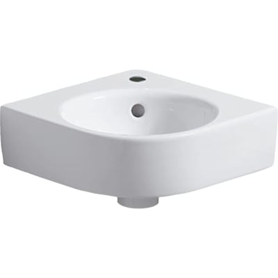 Lavamanos esquinero serie Geberit Selnova Compact: 45x15.5x39.5cm, Blanco, Toma de grifo=Centro