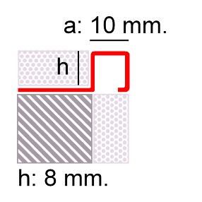 Listel cuadrado inox brillo con protector h:8mm Long:2, 5m
