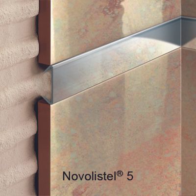 Listel decorativo de gran caravista para separar decorar revestimientos alicatados al mismo nivel Novolistel® 5 acero Inoxidable de Emac®. Fabricado en acero Inoxidable AISI 304 acabado alto brillo Nº 16. Perfil de 2,50 m. de longitud con film protector, con un valor de caravista a: 25 mm. y destinado a complementar baldosas u otro tipo de pavimentos con un espesor total de 7 mm, colocado según se indica en la ficha técnica del fabricante.