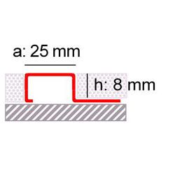 Listel rectangular inox alto brillo h:8mm a:25mm Long:2, 5m