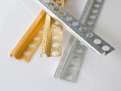 Perfil listel de sección rectangular para colocación como listel decorativo. Fabricado en aluminio anodizado acabado oro brillo nº22. Perfil de 2,50 m. de longitud, con ala de fijación troquelada mediante perforaciones en forma de octógono, protegido con film protector, con caravista a: 10 mm. y destinado a complementar baldosas u otro tipo de pavimentos con un espesor total de 12 mm, colocado según se indica en la ficha técnica del fabricante