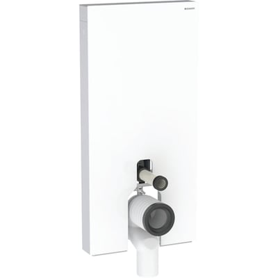 Módulo sanitario Geberit Monolith para inodoro al suelo. Revestimiento frontal: vidrio blanco, Revestimiento lateral: aluminio