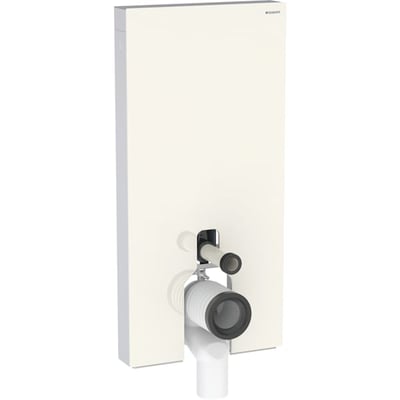 Módulo sanitario Geberit Monolith para inodoro al suelo. Revestimiento frontal: vidrio gris arena; lateral: aluminio