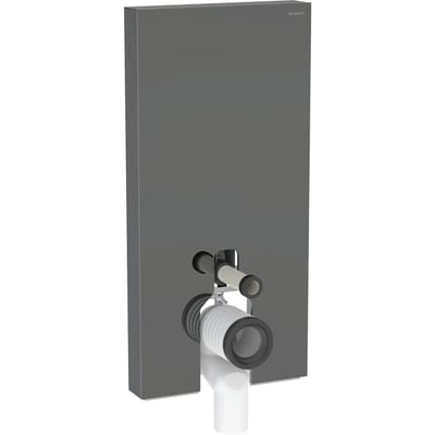 Módulo sanitario Geberit Monolith para inodoro al suelo. Revestimiento frontal: vidrio lava; lateral: aluminio cromado negro