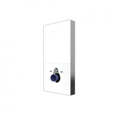 Módulo sanitario OLI QR-INOX acabado en vidrio templado blanco, para inodoro suspendido, con pulsador No-Touch.