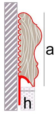 Moldura de madera de ayús o similar h:10 mm. a:68 mm. Long:2, 5 m.