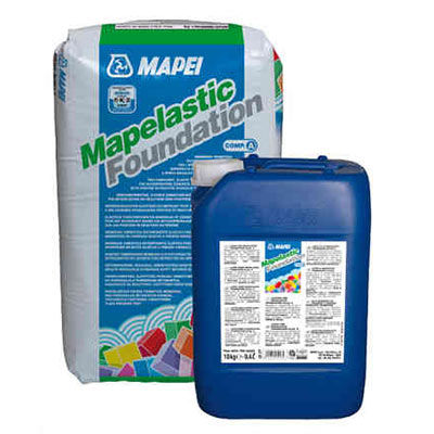 Mortero cementoso, bicomp., elástico, p/imper. superf. hormigón, 32 kg, Mapelastic Foundation, ref. 168322+168410