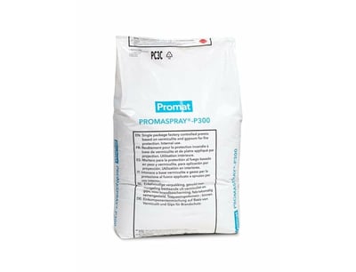 Mortero de proyección, referencia PROMASPRAY® P300 de Promat. Vermiculita, fibras celulósicas y ligantes hidráulicos.
