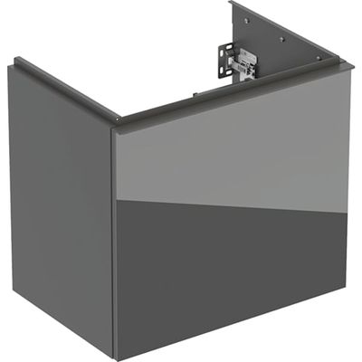 Mueble bajo Geberit Acanto para lavabo, con un cajón y un cajón interior, compacto: Ancho de lavabo=60cm, Cuerpo: lava/cubierto mate, Frontal: lava/vidrio brillante, Tirador: lava/con pintura polvo al horno mate