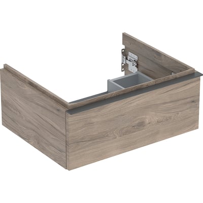 Mueble bajo Geberit iCon para lavabo, con un cajón: Ancho de lavabo=60cm, Cuerpo y frontal: nogal hickory/melamina con textura de madera, Tirador: lava/con pintura polvo al horno mate