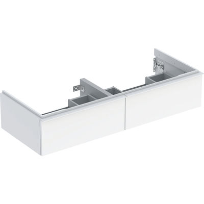 Mueble bajo Geberit iCon para lavabo de dos senos, con dos cajones: Ancho de lavabo=120cm, H=24.7cm, Cuerpo y frontal: blanco/cubierto de alto brillo, Tirador: blanco/con pintura polvo al horno mate