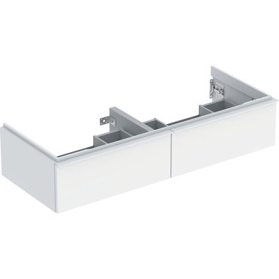 Mueble bajo Geberit iCon para lavabo de dos senos, con dos cajones: Ancho de lavabo=120cm, H=24.7cm, Cuerpo y frontal: blanco/cubierto mate, Tirador: blanco/con pintura polvo al horno mate
