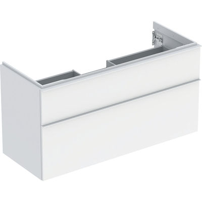 Mueble bajo Geberit serie iCon para lavabo, con dos cajones: Ancho de lavabo=120cm, Cuerpo y frontal: blanco/cubierto mate, Tirador: blanco/con pintura polvo al horno mate