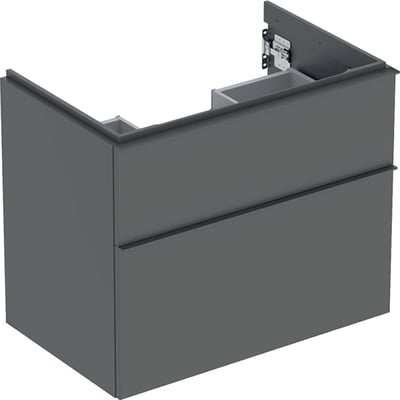 Mueble bajo Geberit serie iCon para lavabo, con dos cajones: Ancho de lavabo=75cm, Cuerpo y frontal: lava/cubierto mate, Tirador: lava/con pintura polvo al horno mate