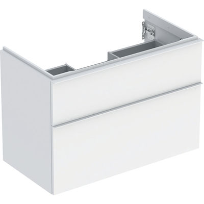 Mueble bajo Geberit serie iCon para lavabo, con dos cajones: Ancho de lavabo=90cm, Cuerpo y frontal: blanco/cubierto mate, Tirador: blanco/con pintura polvo al horno mate
