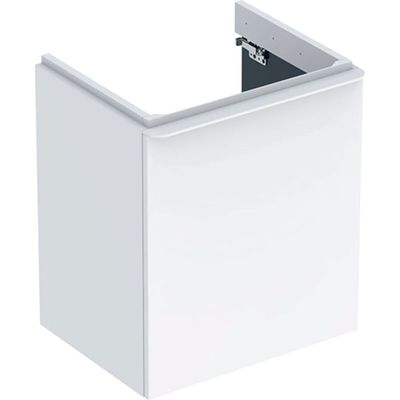 Mueble bajo Geberit serie Smyle Square para lavabo, con una puerta: 53.6x61.7x43.3cm, Blanco, Ancho de lavabo=55cm, Puerta=Lado de fijación a la derecha