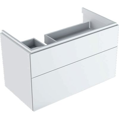 Mueble bajo Geberit Xeno² para lavabo con superficie de apoyo, con dos cajones: Ancho de lavabo=90cm, H=53cm, Blanco / Cubierto brillante intenso