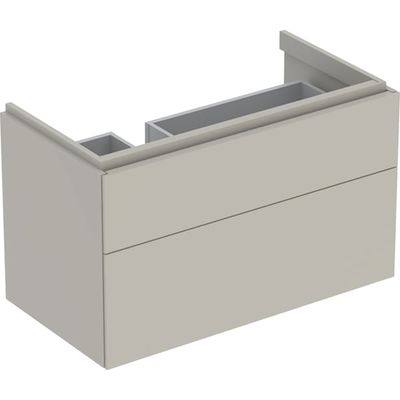 Mueble bajo Geberit Xeno² para lavabo con superficie de apoyo, con dos cajones: Ancho de lavabo=90cm, H=53cm, Greige / Cubierto mate