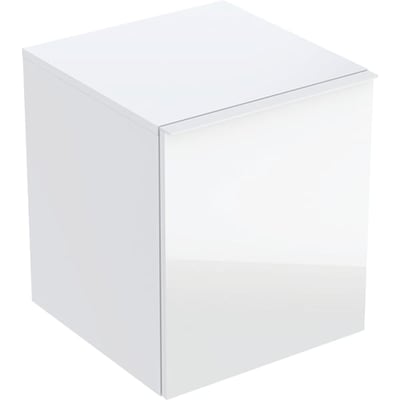 Mueble lateral Geberit Acanto con un cajón y un cajón interior: H=52cm, Cuerpo: blanco/cubierto alto brillo, Frontal: blanco/vidrio brillante, Tirador: blanco/con pintura polvo al horno mate